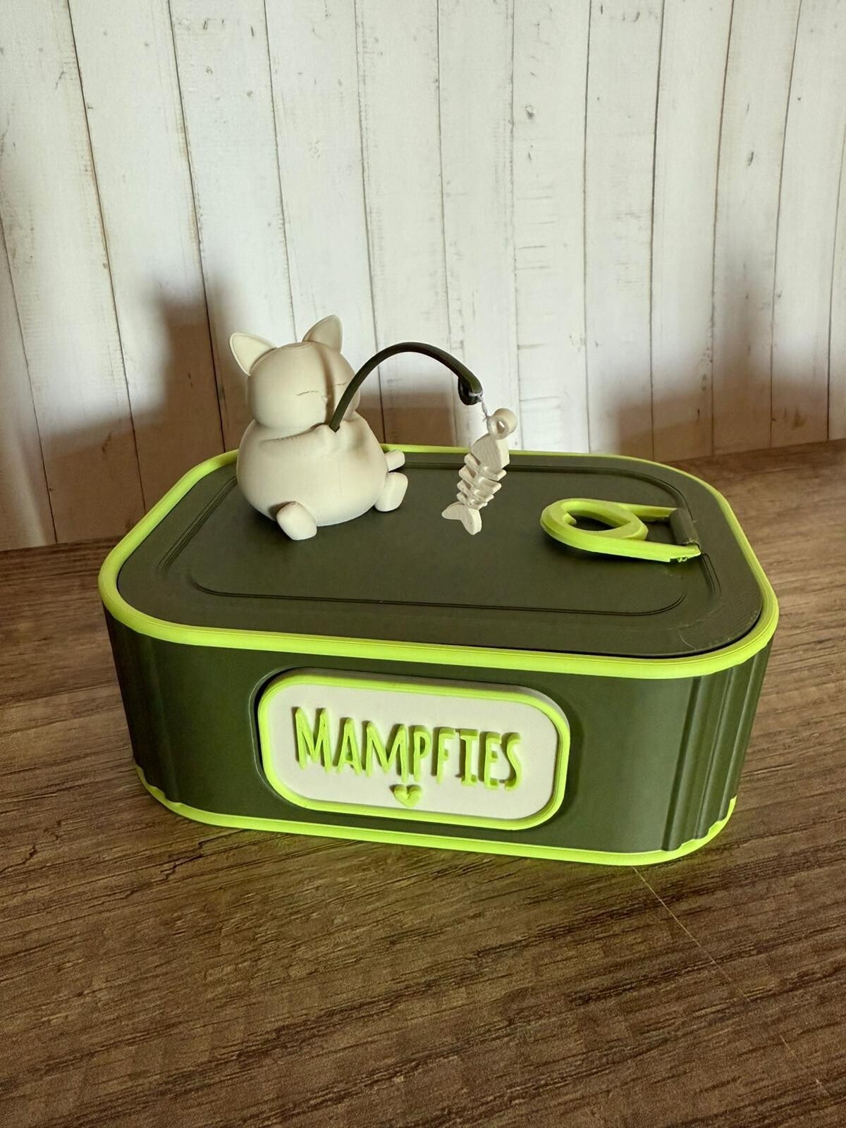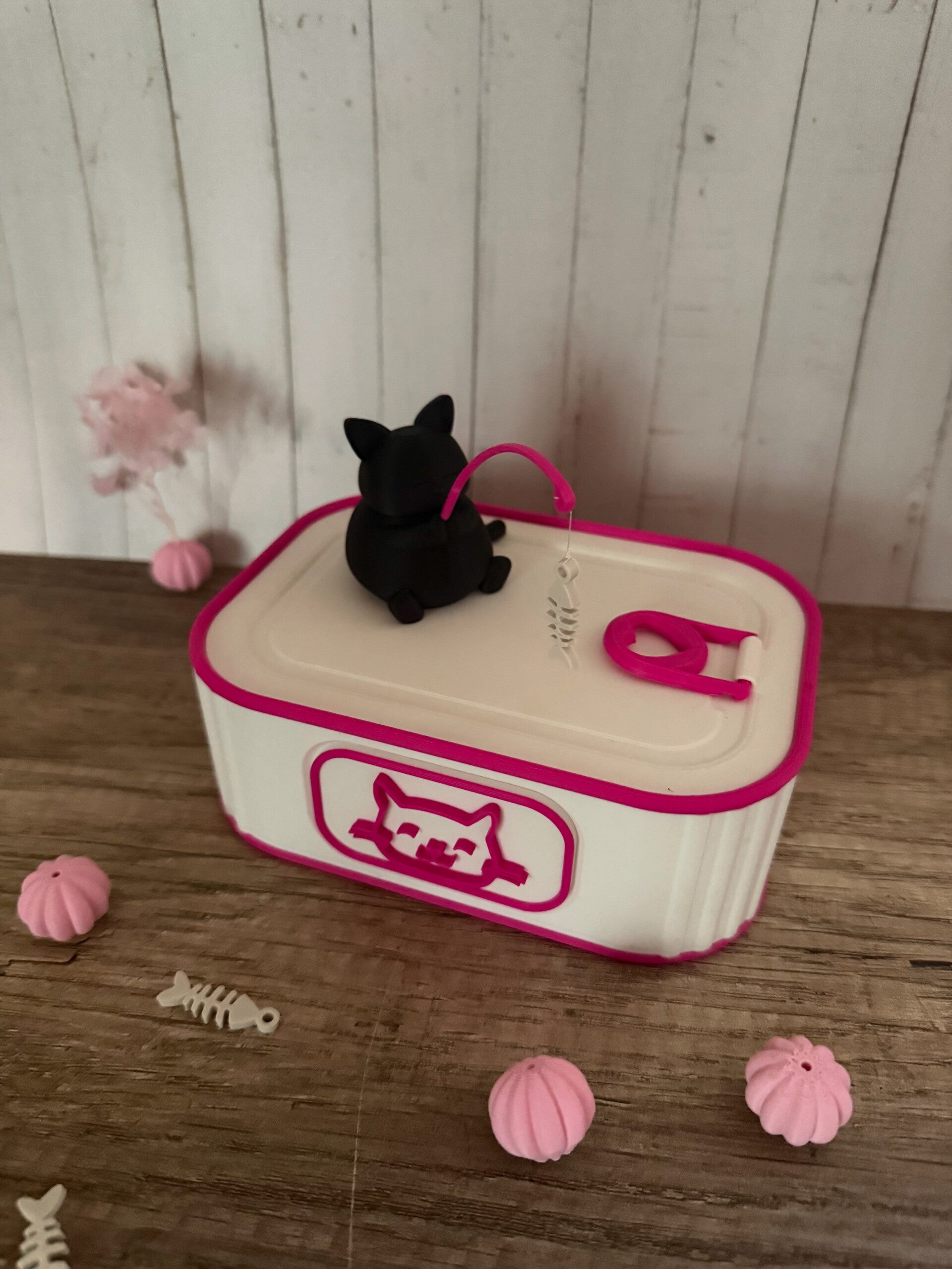 Diese liebevoll gestaltete Leckerlidose ist nicht nur ein Hingucker, sondern auch super praktisch für unterwegs oder zuhause. Das originelle Design mit einer Katze, die eine Angel und einen Fisch hält, macht die Dose zu einem tollen Geschenk für jeden Katzenfan!